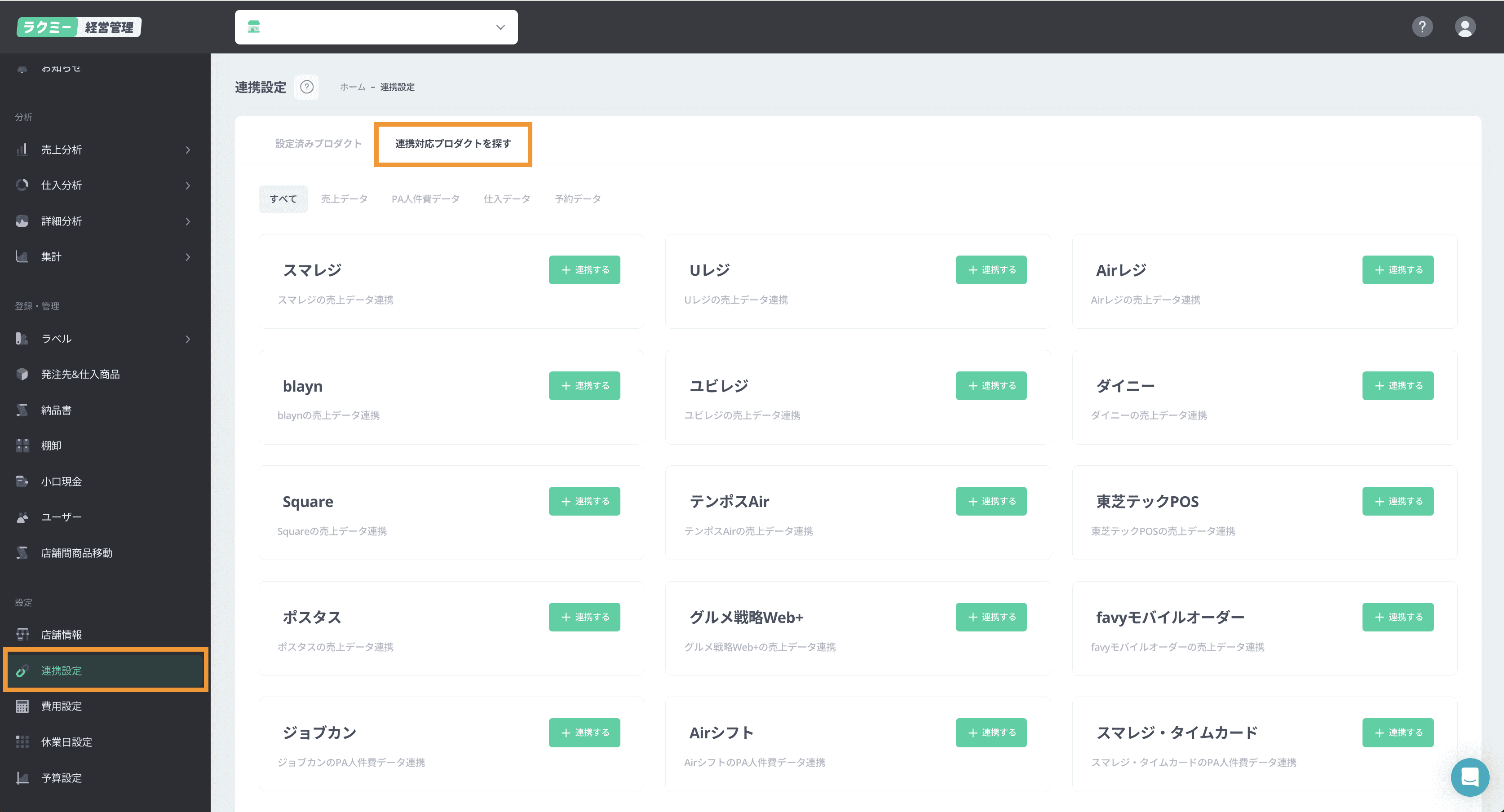 「企業コード」「店舗番号」を入力し、「連携する」を選択