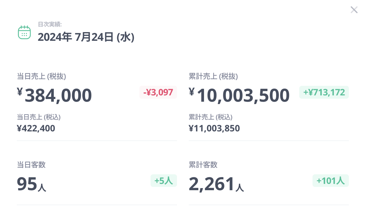 当日売上 (税込) | 選択日の売上金額(税込) |