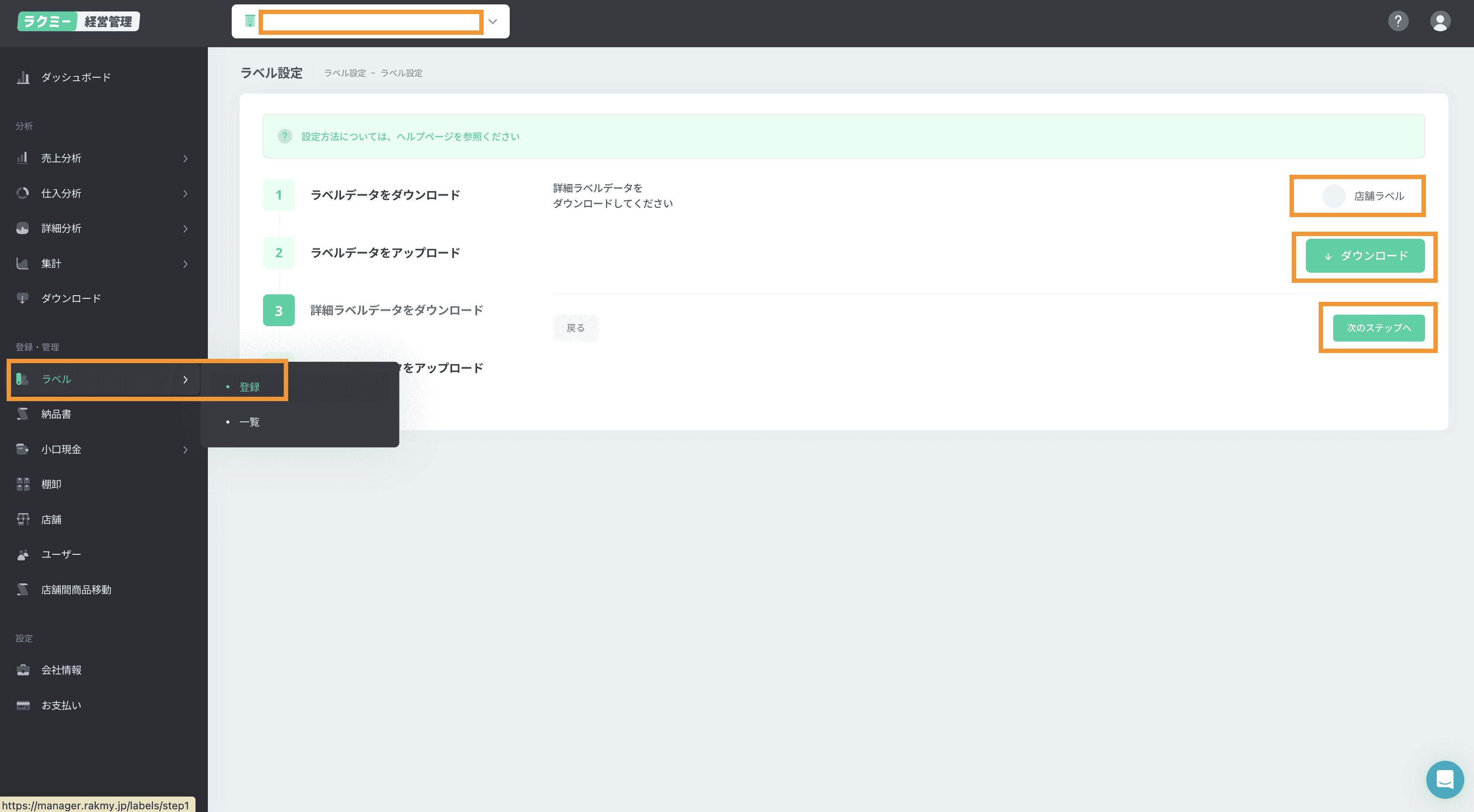 店舗ラベル(詳細ラベル)を設定するためには、ラベル登録が必要です