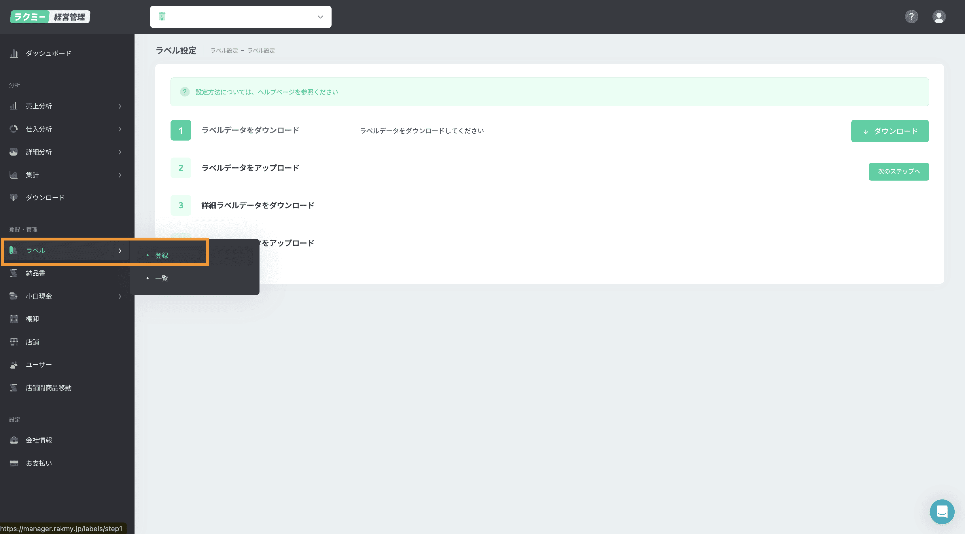 2. 新たなラベルが必要な場合は、「ラベル登録」をご参照のうえ、まずはラベル登録を行ってください