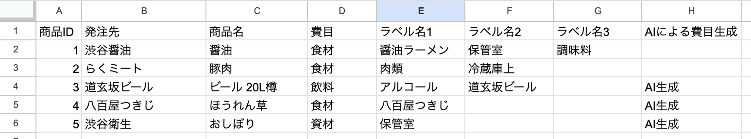 表記記載されている商品名は、AIにより「費目」が自動設定された商品です
