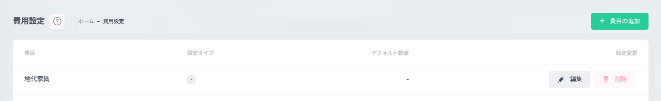 費目の追加(デフォルト数値)