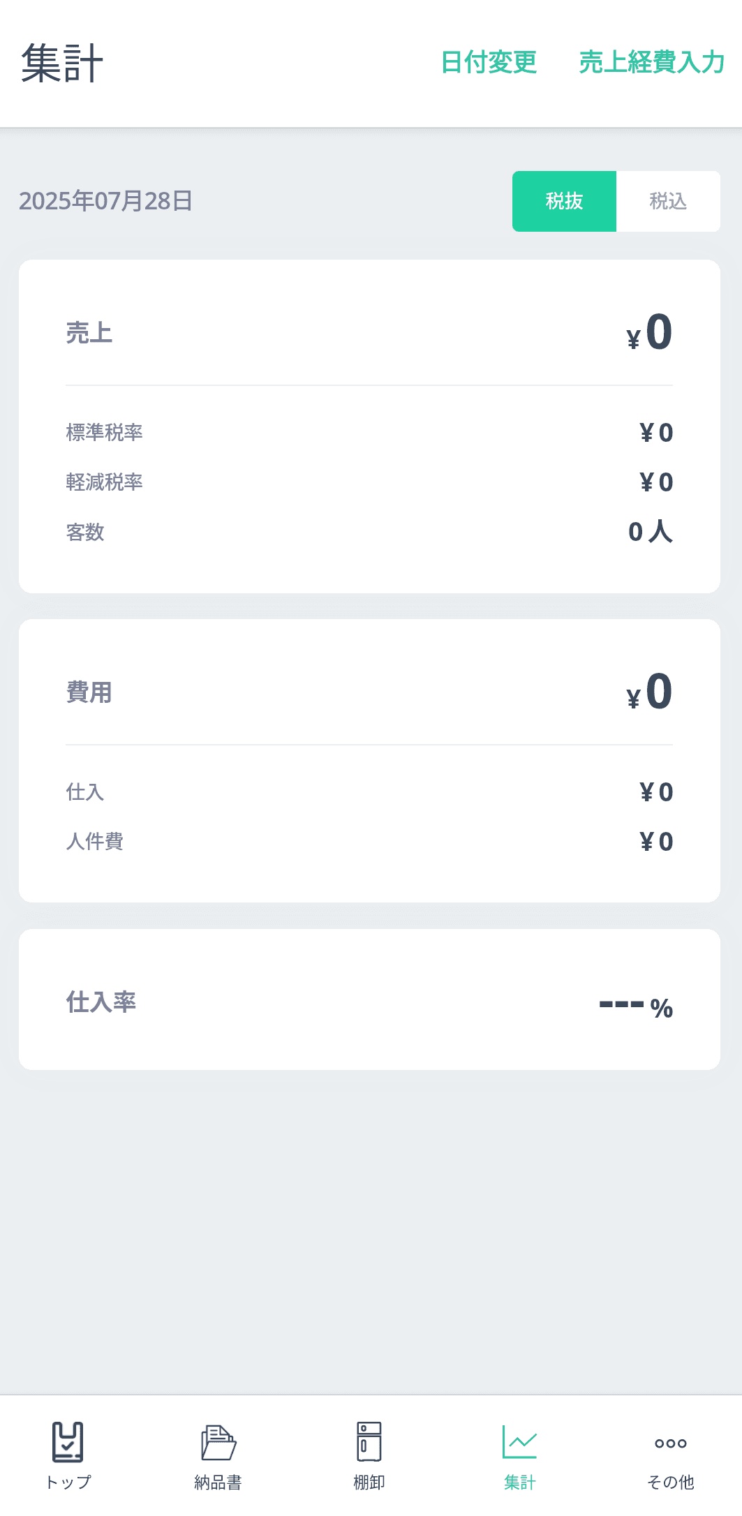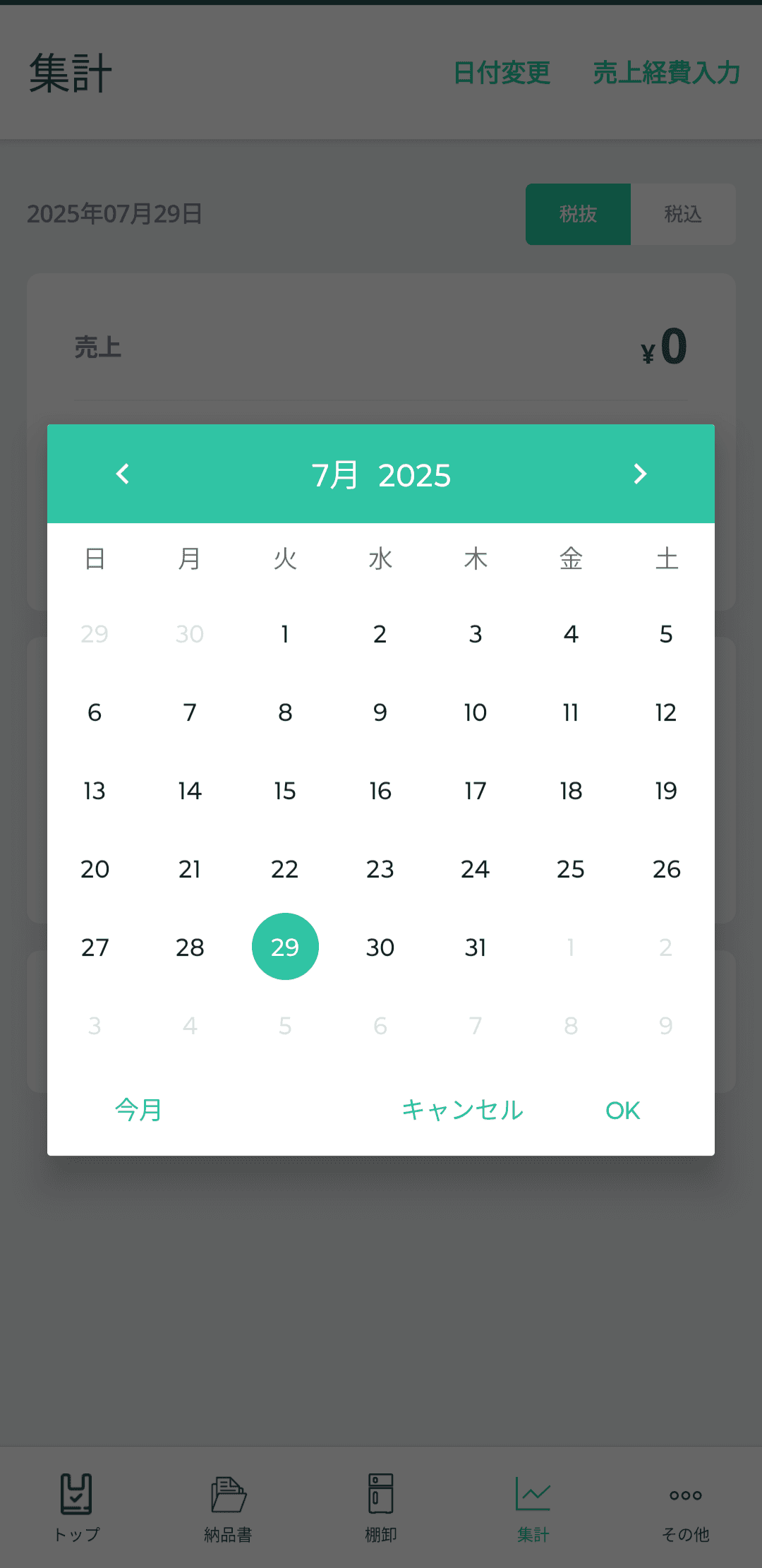 集計>右上の「売上経費入力」を選択する