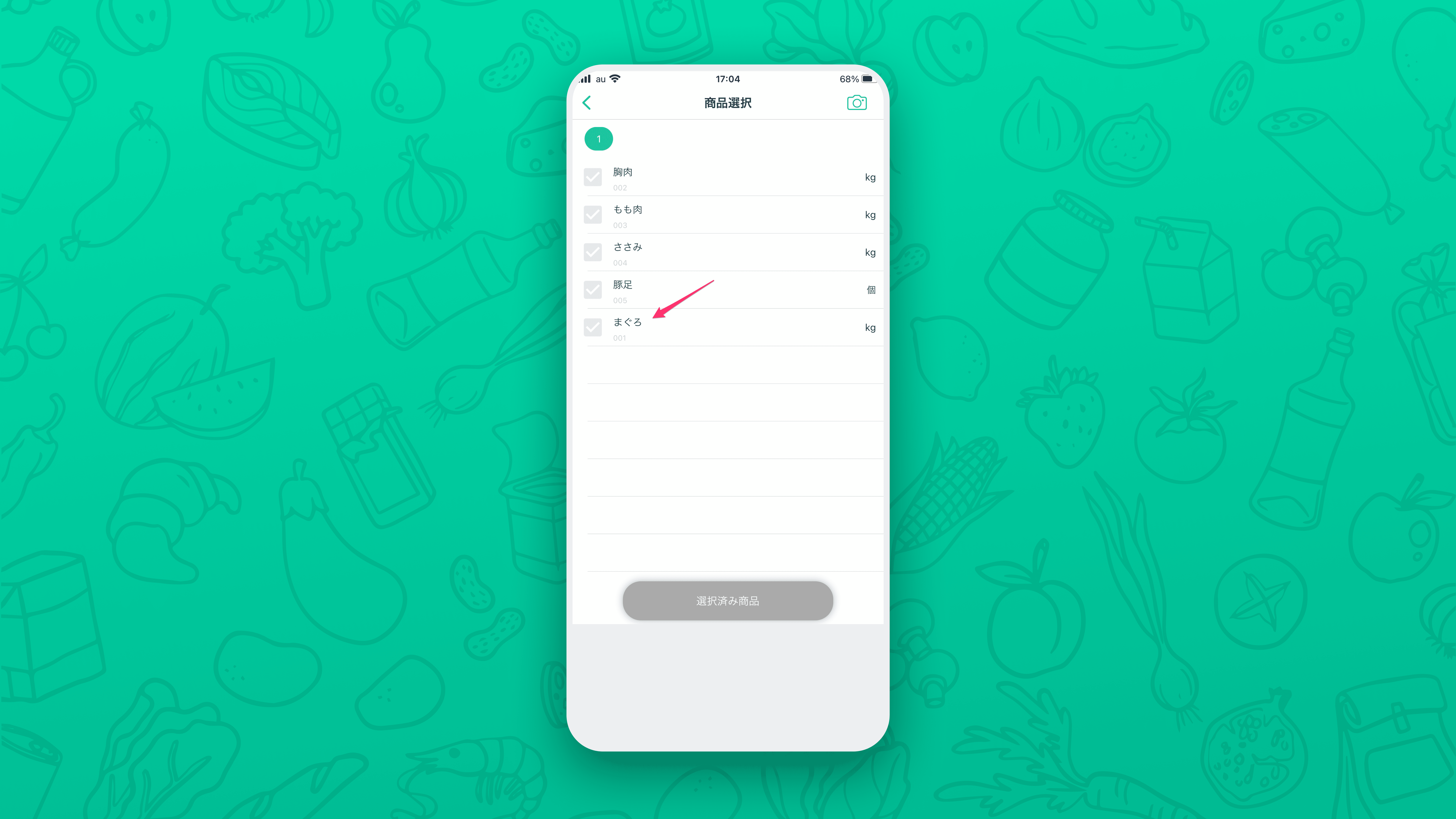 並べ替え前: 商品選択欄で、まぐろは一番上にありました