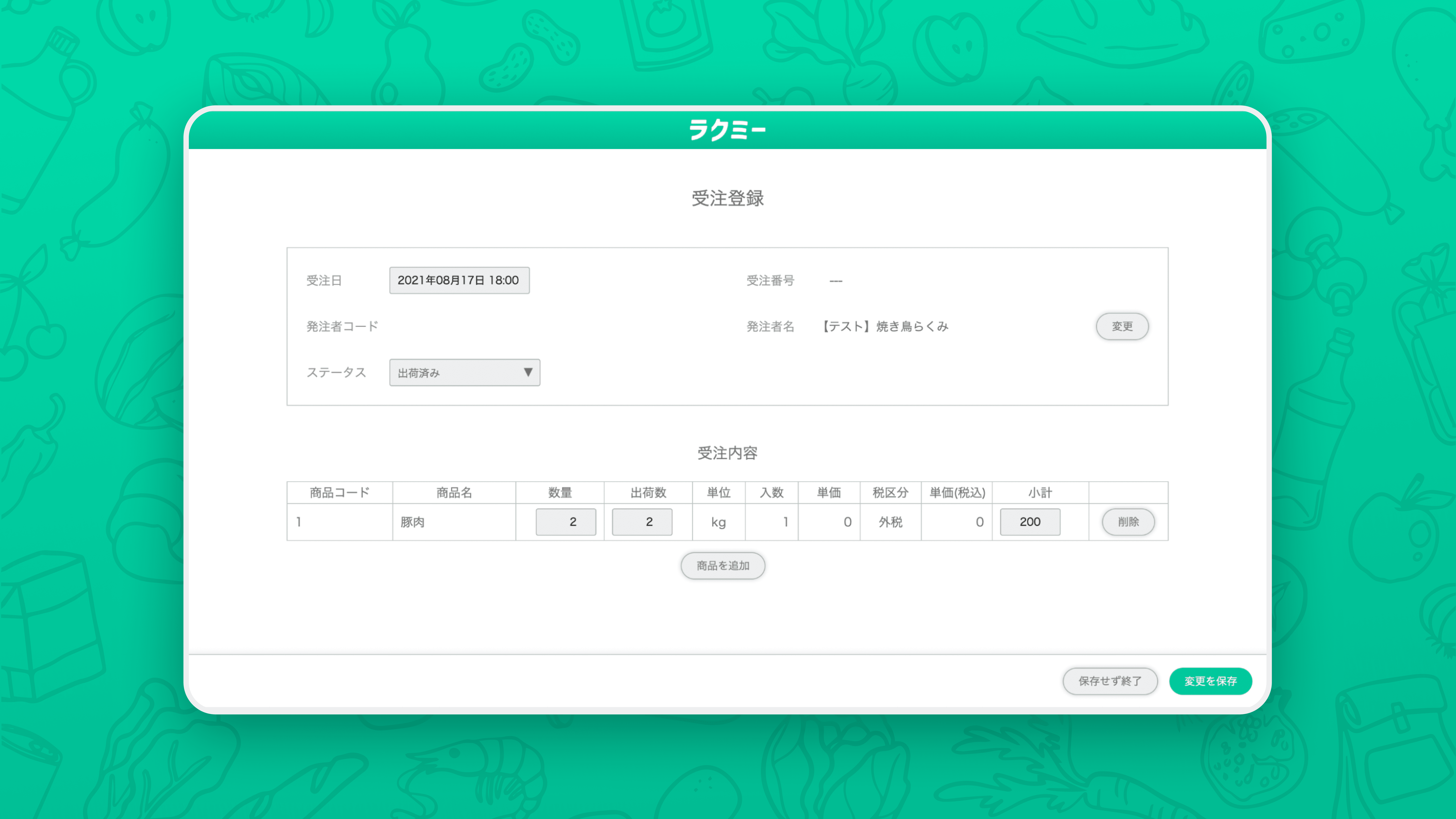 ラクミー以外(FAX、電話、メール、Webなど)から受注があった場合、システム上に受注を追加登録できます