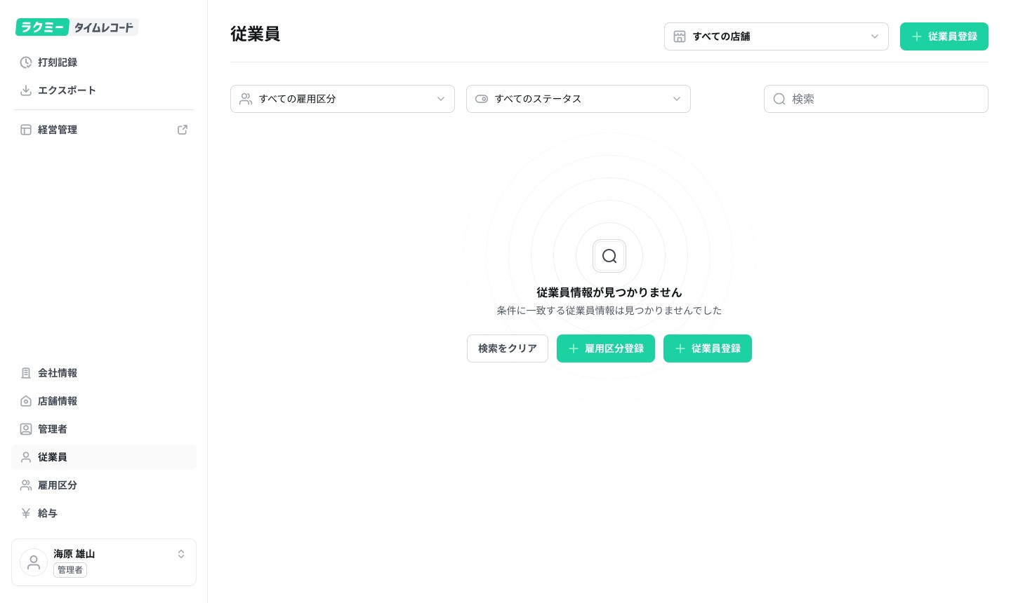ナビゲーションメニューから「従業員」を選択