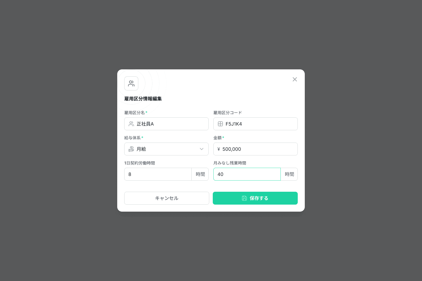 雇用区分ページにて、雇用区分名の行の右端の✏️アイコンをクリックし、雇用区分情報を編集