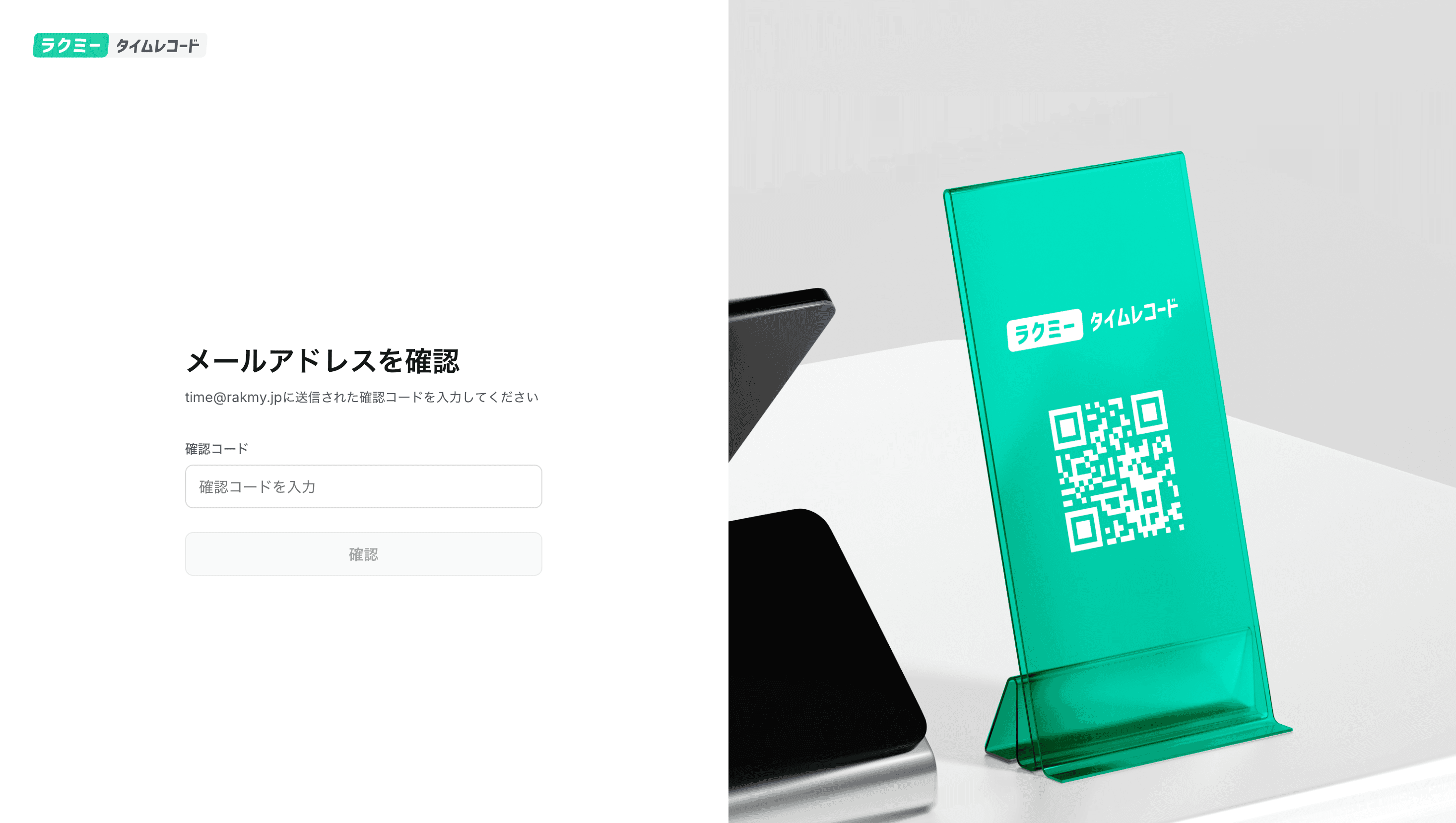 入力したメールアドレス宛に届く確認コードを入力します