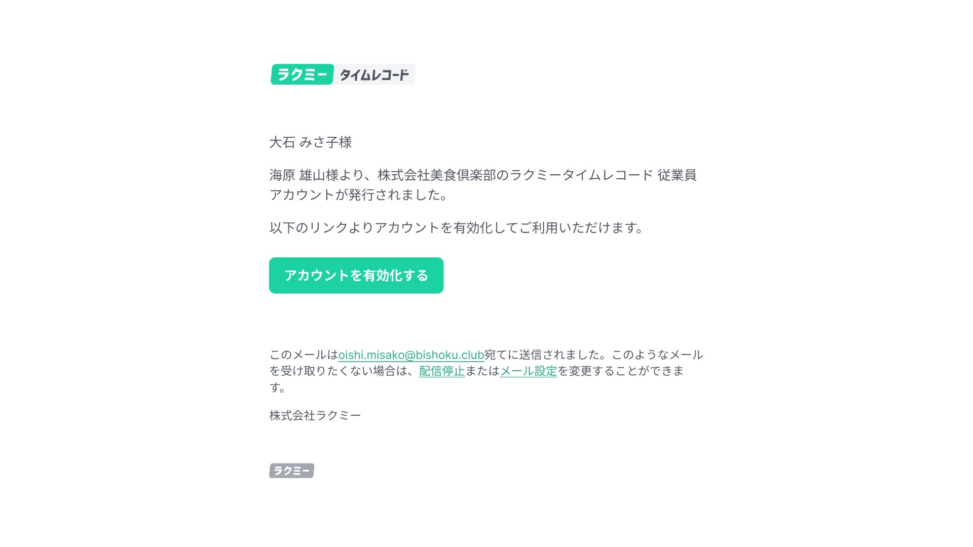新規登録された従業員は、招待メール内の「アカウントを有効化する」をタップし、アカウント情報を入力します。