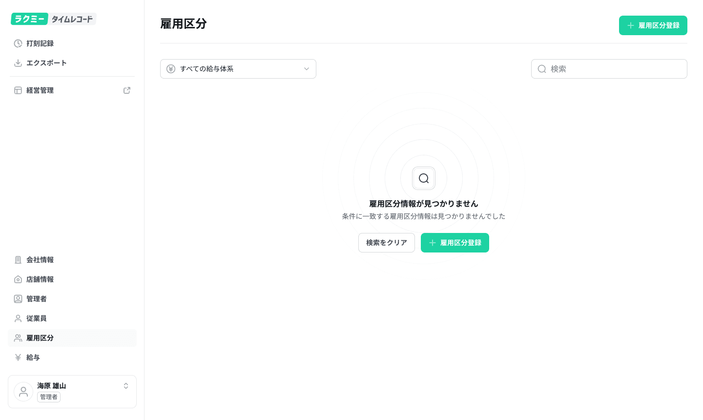 ナビゲーションメニューから「雇用区分」を選択