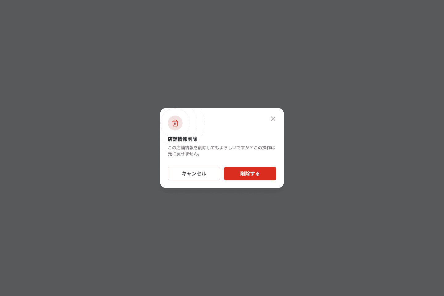 店舗情報ページにて、店舗名の行の右端の🗑️アイコンをクリックし、店舗情報を削除